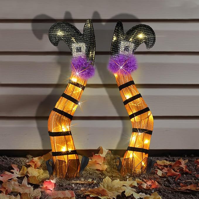クロスボーダー新しいハロウィンアイアンハイヒールバット魔女義足屋外芝生中庭発光装飾アイアンアート