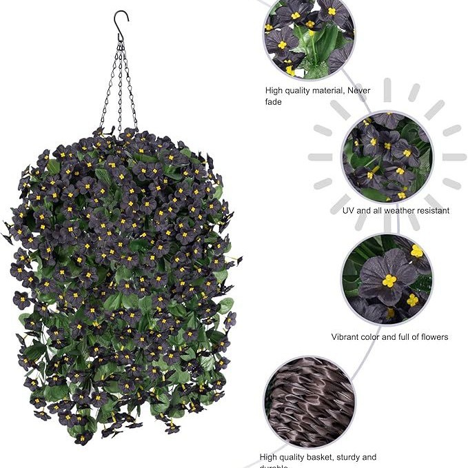 クロスボーダーハロウィンハンギングフラワー植物バスケットシミュレーション黒蘭つるポーチパティオ家の装飾用