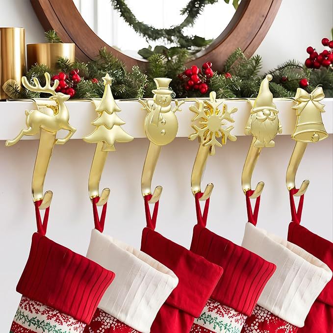 クリスマスストッキングホルダー ケープマントルピース用 クリスマスストッキングフック ホリデーデコレーション ウェイトハンガー (6個セット)
