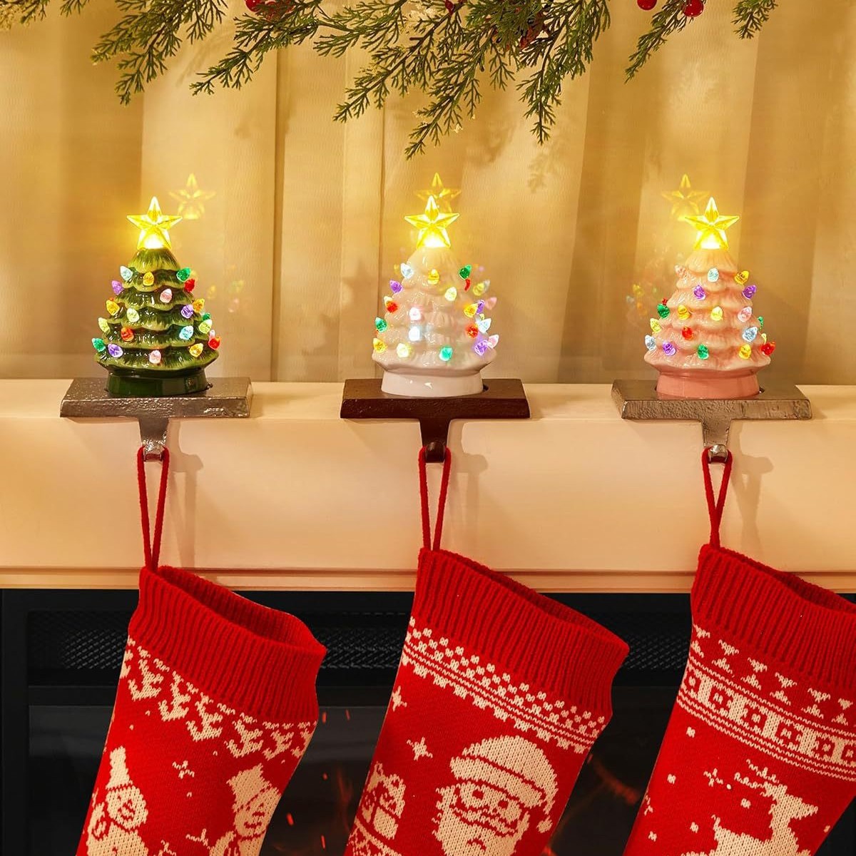 2025 クロスボーダーレトログリーンホワイトピンク発光ツリークリスマスソックスフックセラミッククリスマスフック家の装飾