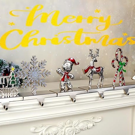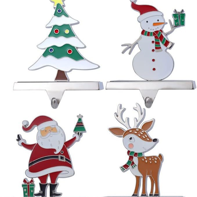新しいクリスマスシルバーメタルクリスマスストッキングホルダーマントクリスマスストッキングフック暖炉ストッキングフック用