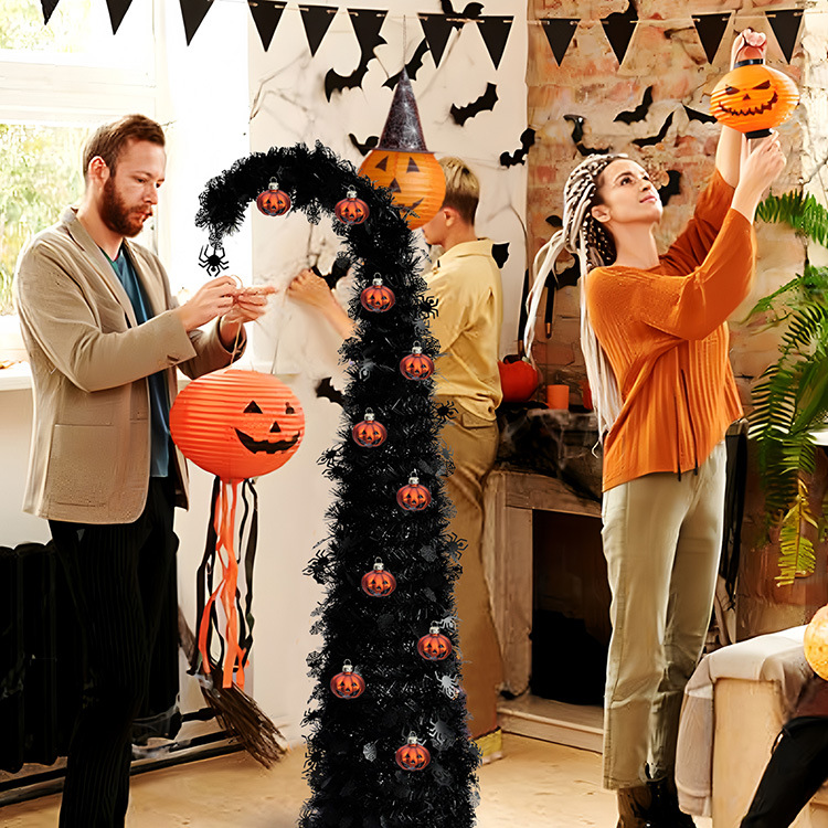2025 クロスボーダー新ハロウィン 1.5m 黒曲がった首の木 PVC 素材ハロウィンツリー雰囲気装飾