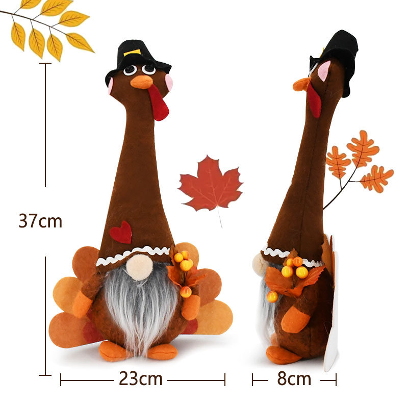 新商品の豊作節は顔のない小人の七面鳥の形の公仔の装飾が飾られています。デパートのショーウインドーの家の感謝祭の装飾です。