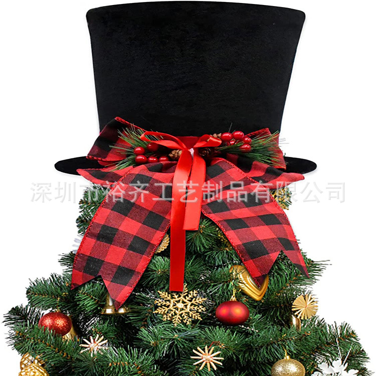 アマゾンクリスマスツリーの帽子クリスマス装飾木の上の星の蝶結びの黒い帽子クリスマスツリーのトップ装飾