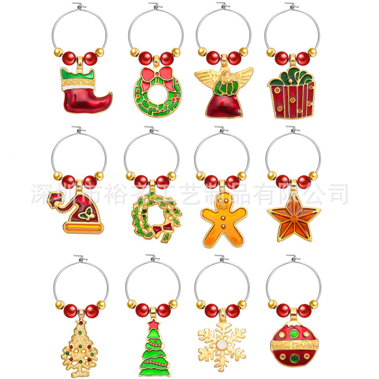 アマゾン热い贩売クリスマスワインカップリング12pcs亜铅合金シャンパンワイングラス装饰ワインカップリング识别器