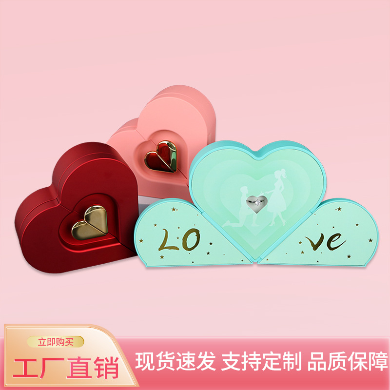 クロスボーダー愛のハート型包装ジュエリーボックスバレンタインデーダブルドア中空リングネックレスギフトボックス卸売
