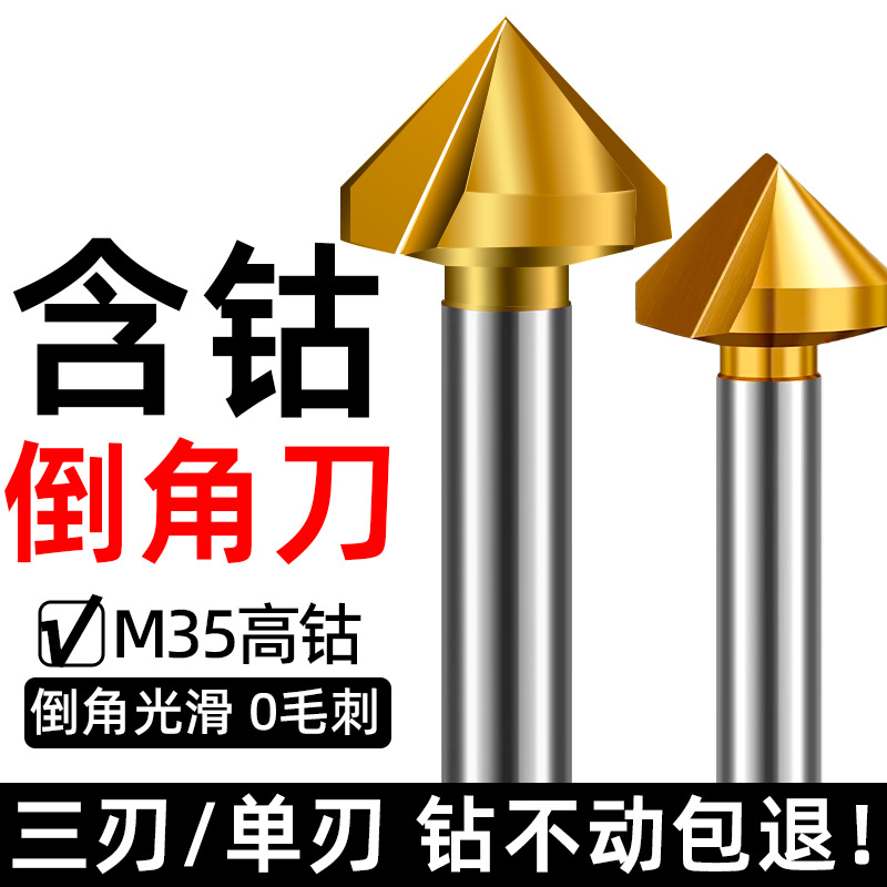 三刃面取りカッター 90度バリ取り 片刃面取りカッター 45度チタンメッキストレートハンドル ステンレス皿穴ドリル