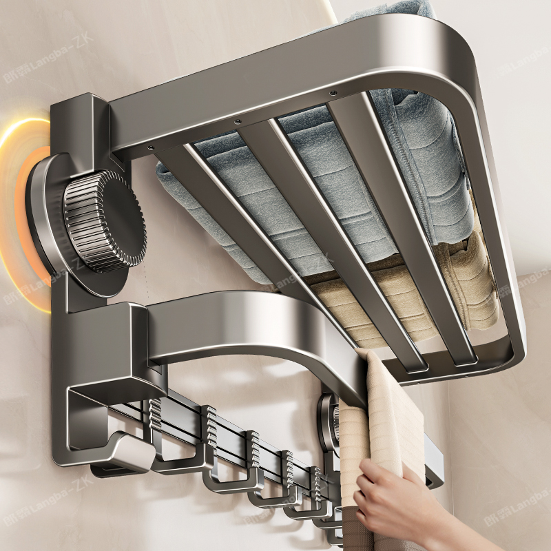 吸盤タオルラック一体型バスルーム新しいタオルバーバスタオルラック2025フリーハンギングバーパンチングバスルーム収納ラック