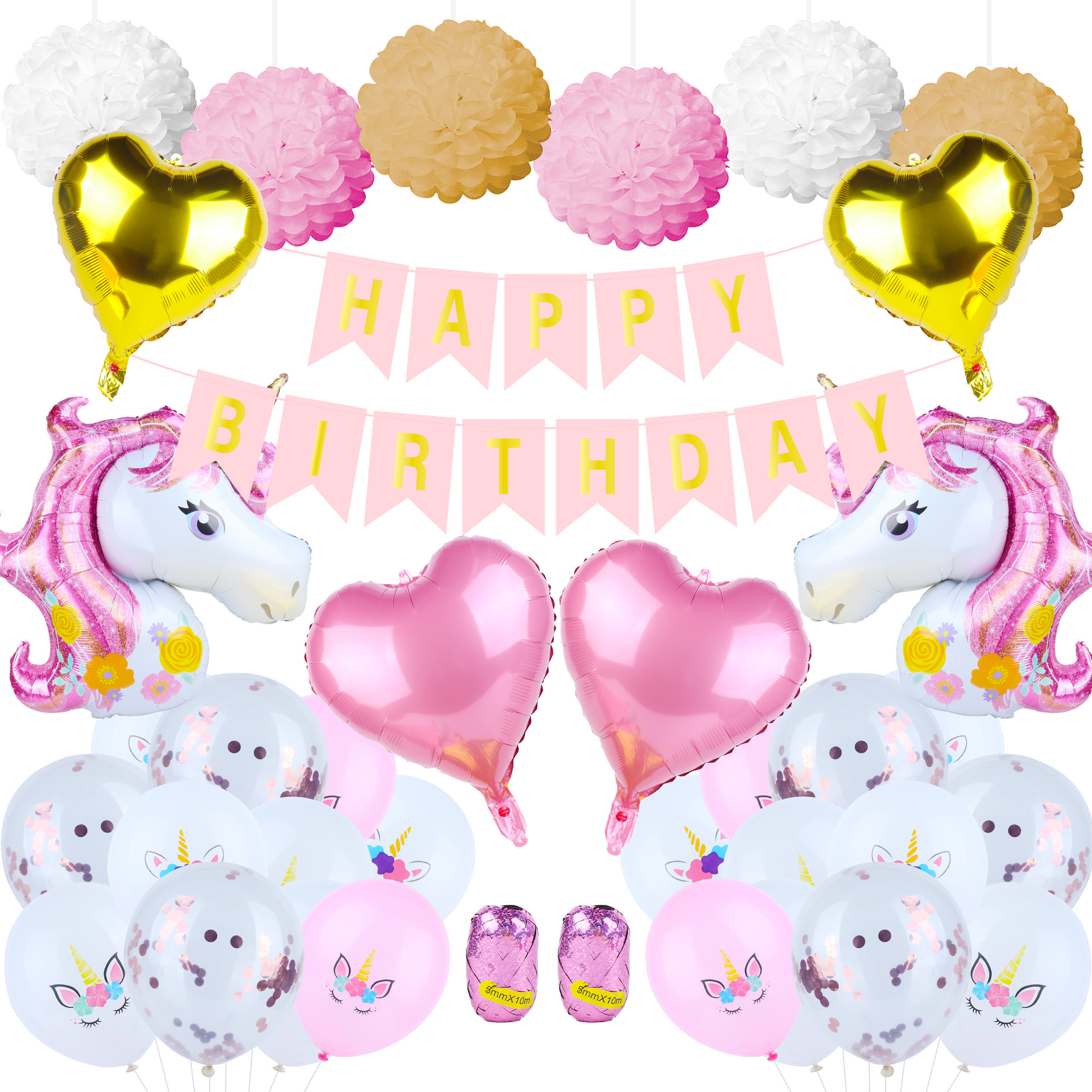 現物ユニコーン誕生日パーティー風船セットバナー愛アルミ膜風船紙花球パーティー装飾品