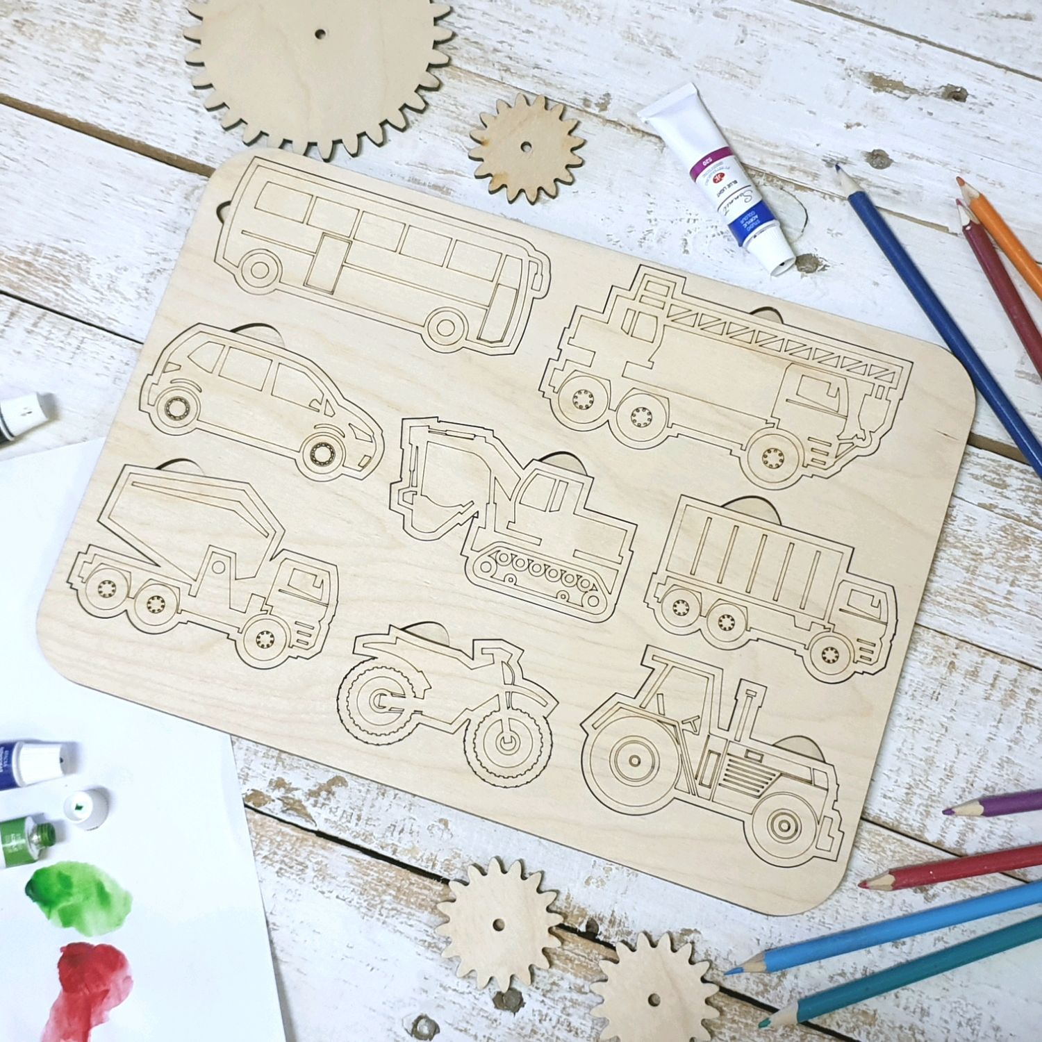 新しい木製輸送道具パズルモンテッソーリ玩具幼児学習とペンキ自動車学習ゲーム