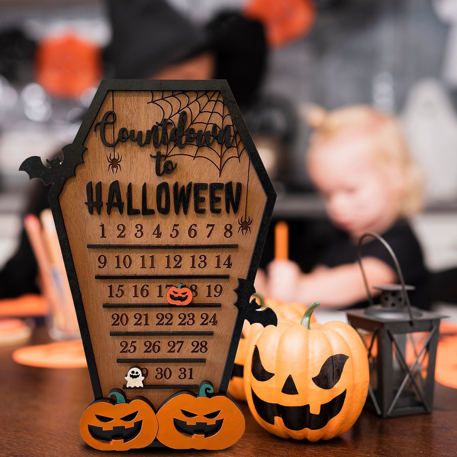国境を越えた新型2024ハロウィーンカウントダウン木製装飾デスクトップ装飾カボチャコウモリクモ木製装飾品
