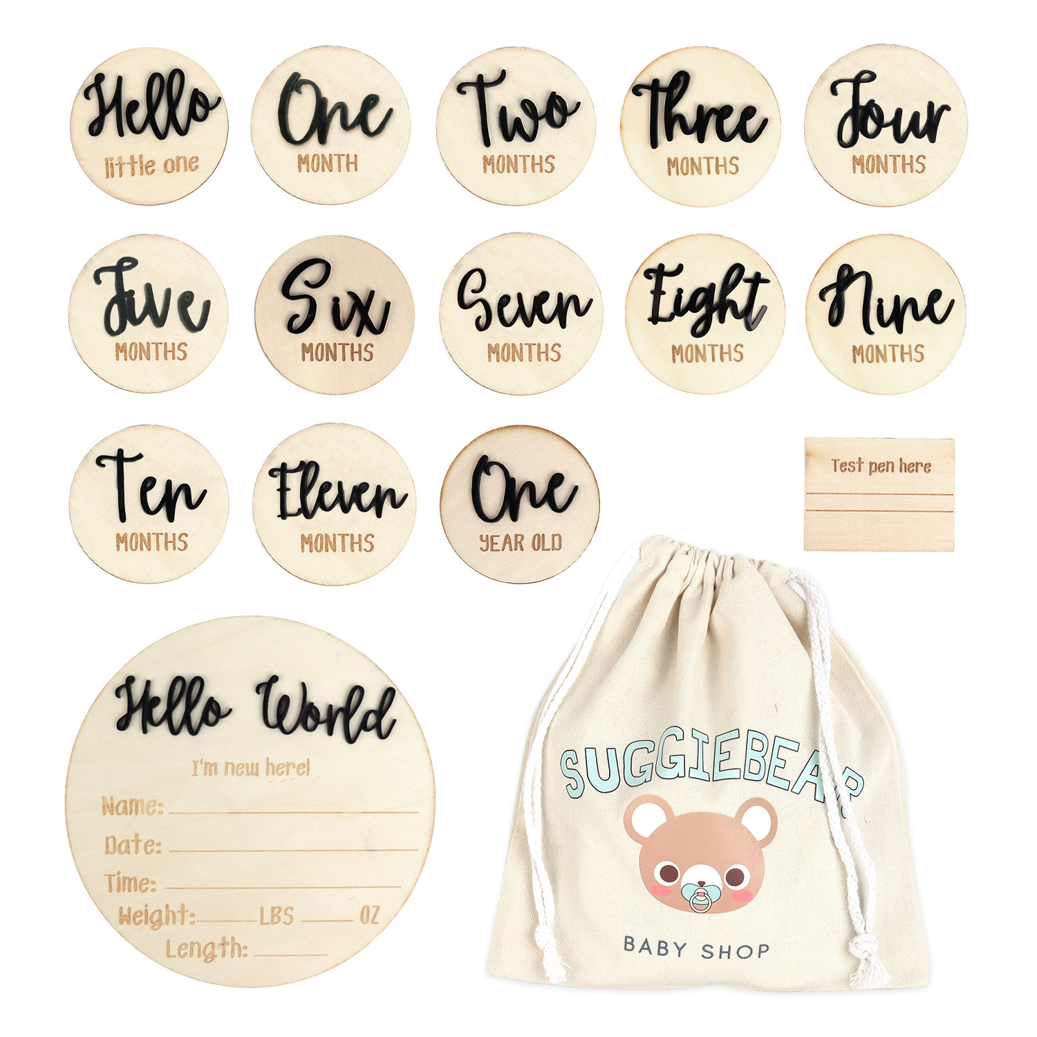 国境を越えた現物新生児満歳記念ブランド木製円形純黒色アルファベット成長記録木ブランドマイルストーン