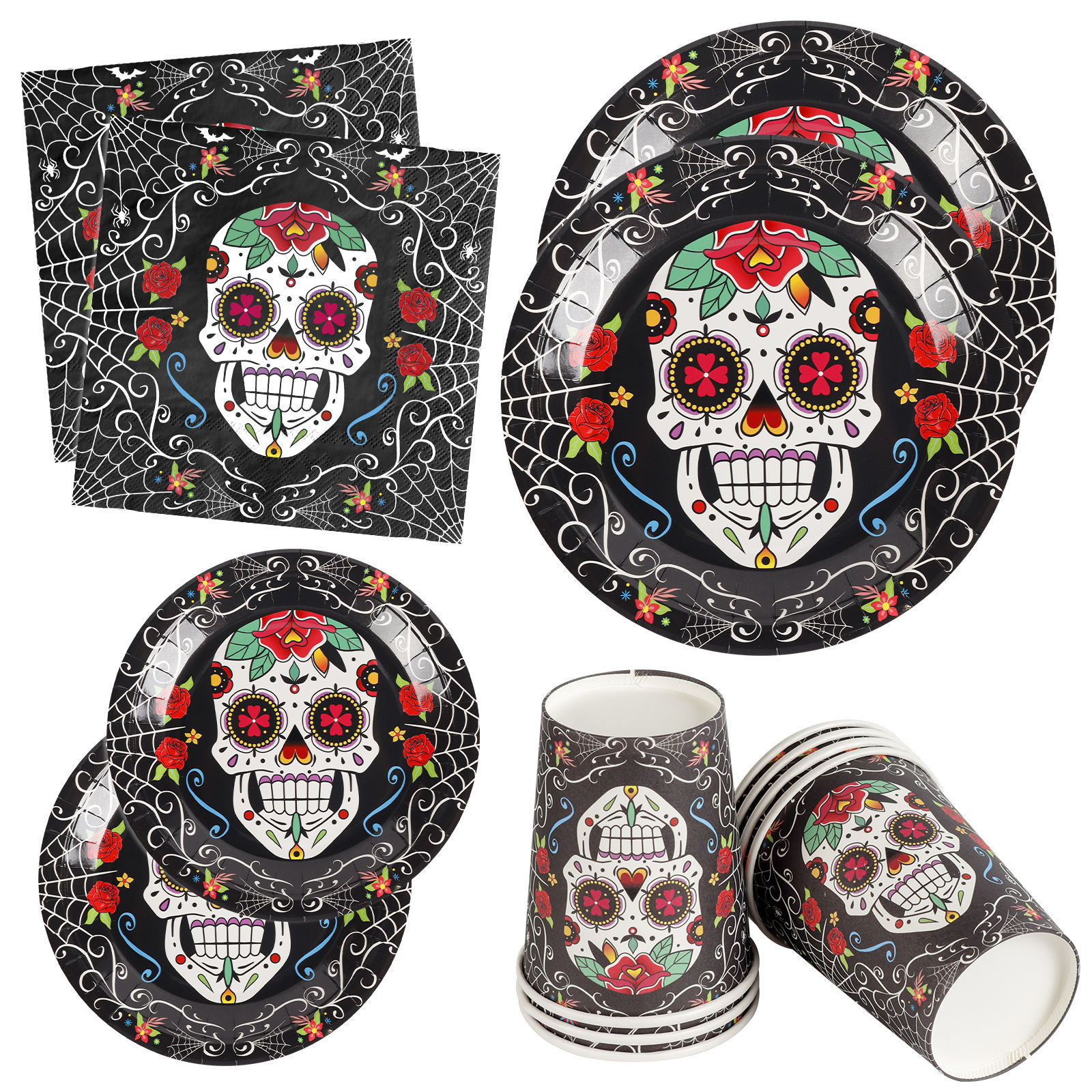 クロスボーダー亡霊祭パーティー用品使い捨て紙皿紙コップティッシュセット花スカルハロウィーン食器