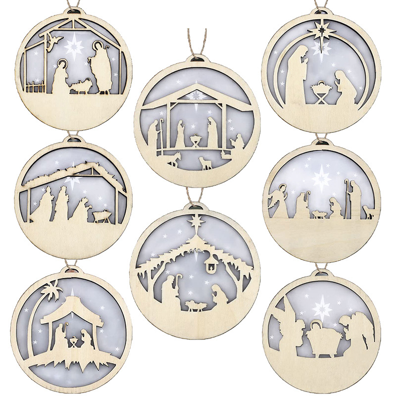 クロスボーダーイエス诞生木制アクリルラウンド雪花饰りクリスマスパーティー饰りストラップ饰り用品