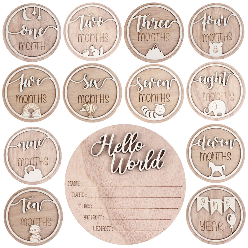 現物木造新生月牌diy木造牌乳児記念牌マイルストーン写真月ハローワールド
