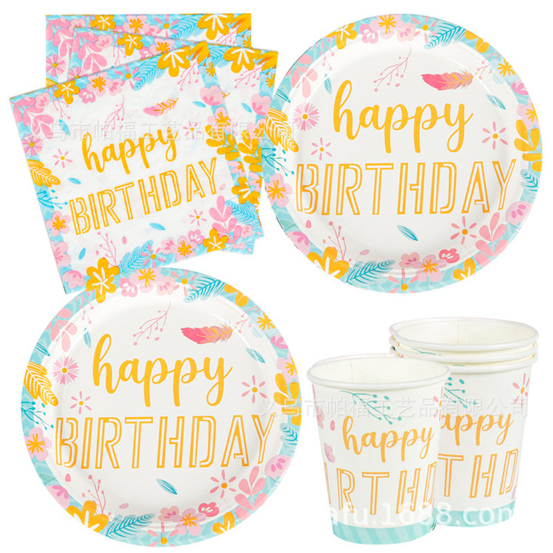 スポット新誕生日テーマパーティー使い捨て紙皿紙コップセット誕生日パーティー紙皿セット卸売り
