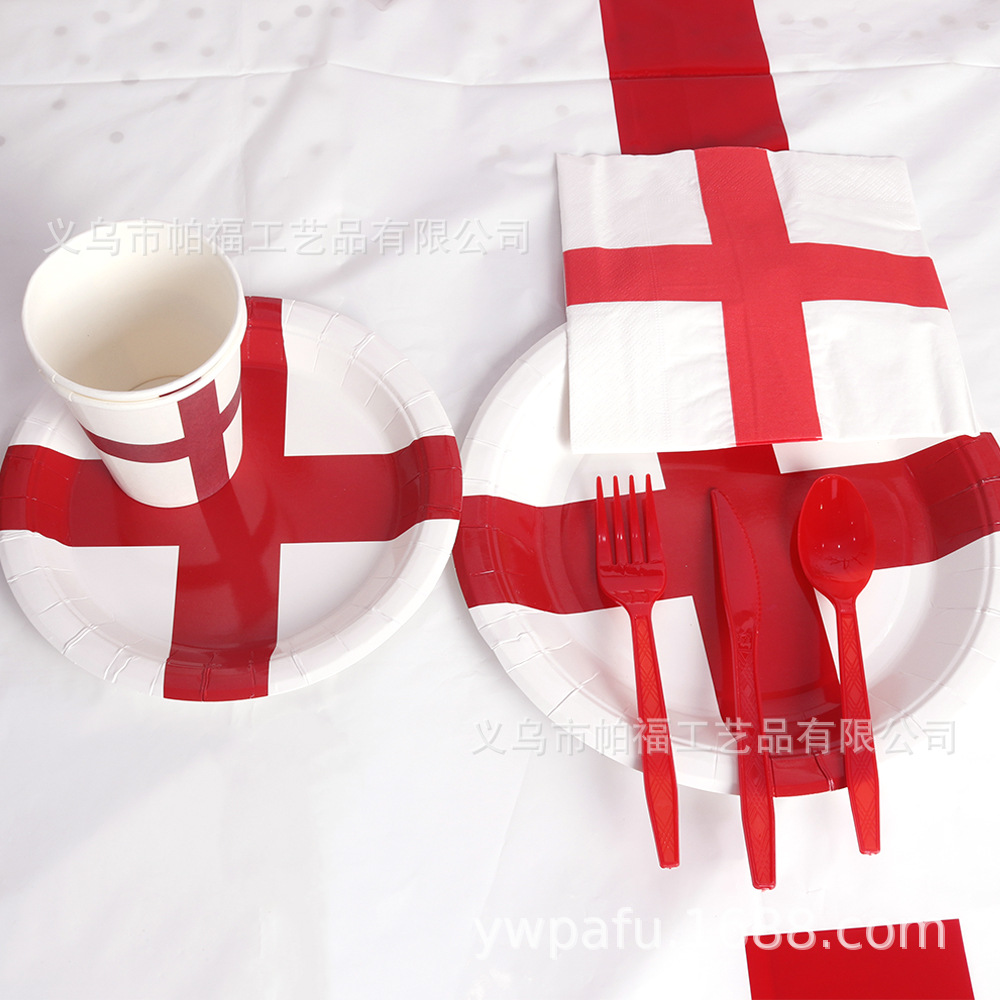 クロスボーダー専用2022ワールドカップテーマ使い捨て紙コップセットイングランドシリーズ紙コップ紙皿
