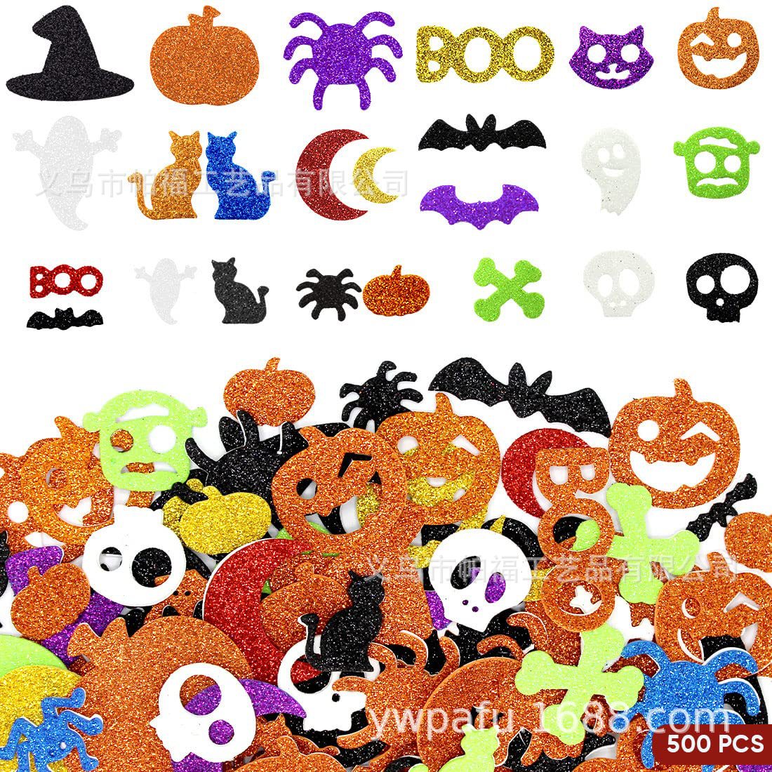 クロスボーダーハロウィンパーティー装飾子供の DIY 手作り泡 EVA ステッカー自己粘着カボチャ魔女帽子の形