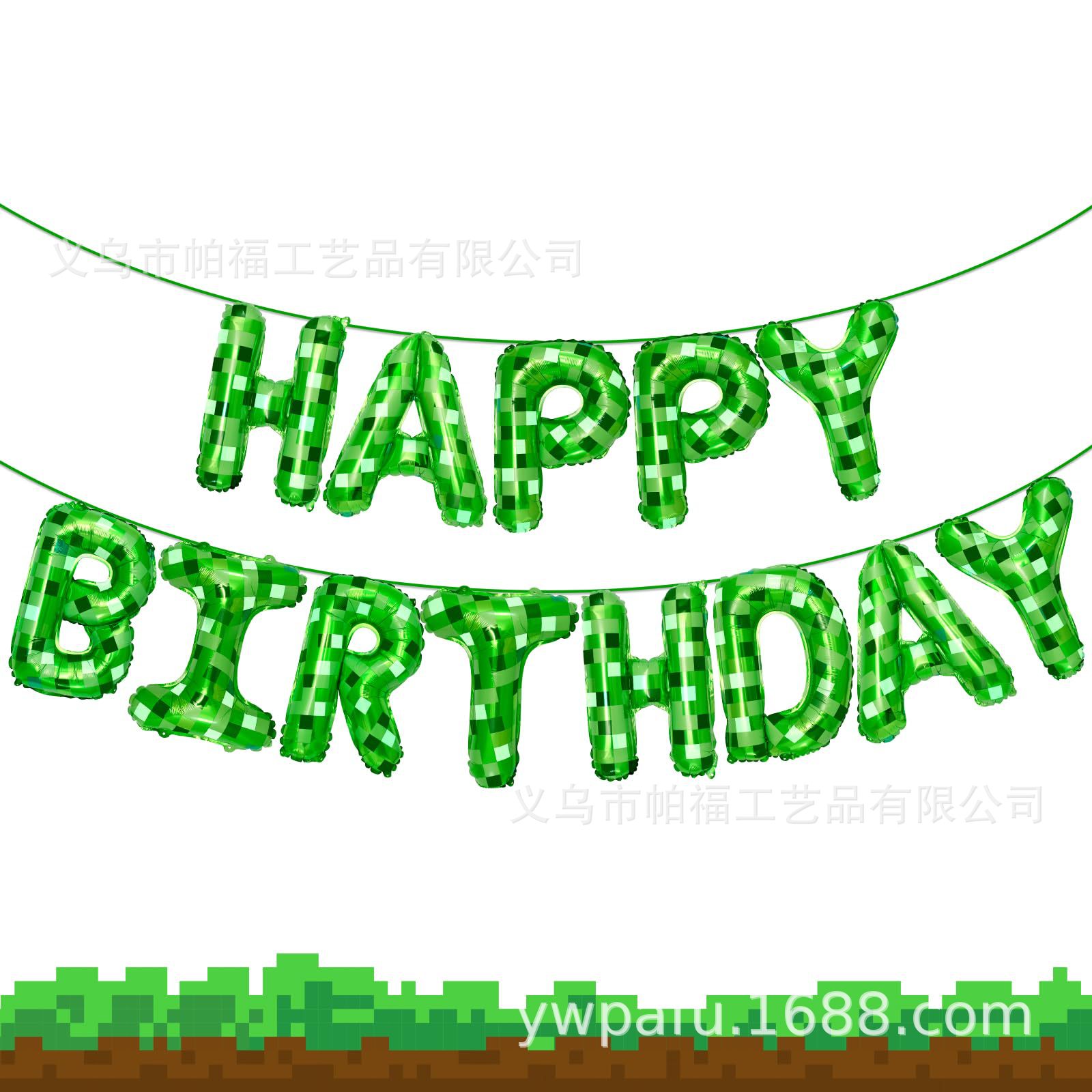 クロスボーダー Amazon 人気の Minecraft グリーン ピクセル文字アルミフィルムバルーン子供の誕生日パーティーの装飾