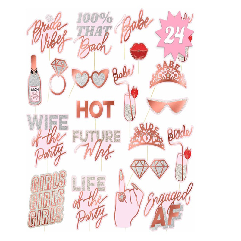 Amazon 23個入り モノクロガール写真用紙小道具 ウェディング独身パーティー ローズゴールド写真小道具