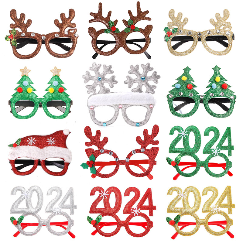 新品クリスマス装飾メガネ大人子供プレゼント祝日用品パーティークリエイティブクリスマス帽子ツリー鹿角メガネ