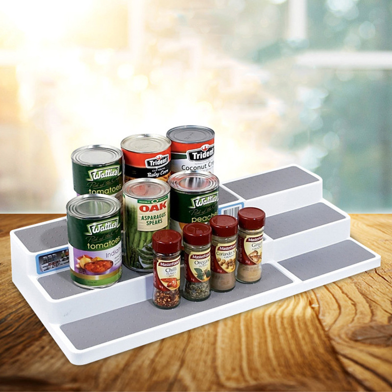 伸縮可能な調味料収納棚横引き式三段階段調味料棚は台所用品の棚を調節できます。