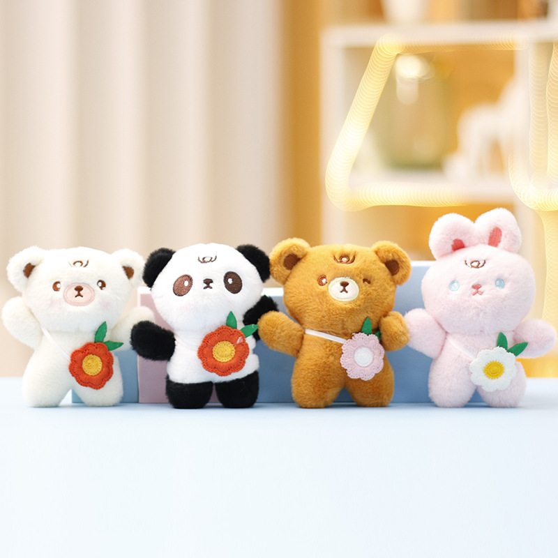 ミニぬいぐるみ花パンダ人形かわいい人形バッグペンダント人形キーホルダー小さなペンダント卸売