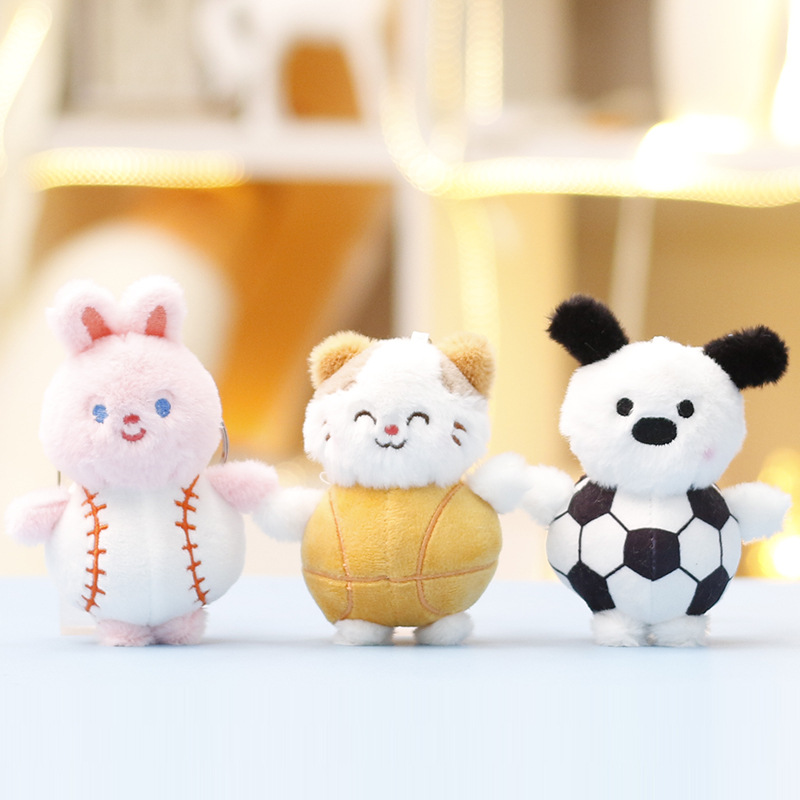 かわいいサッカーウサギのペンダントぬいぐるみ子犬人形子猫クマスクールバッグペンダントキーホルダー
