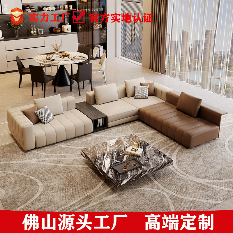 2025新型現代極簡霊動島ソファーリビングルーム家庭用デザイナーは多機能組み合わせ布芸を調節できます。