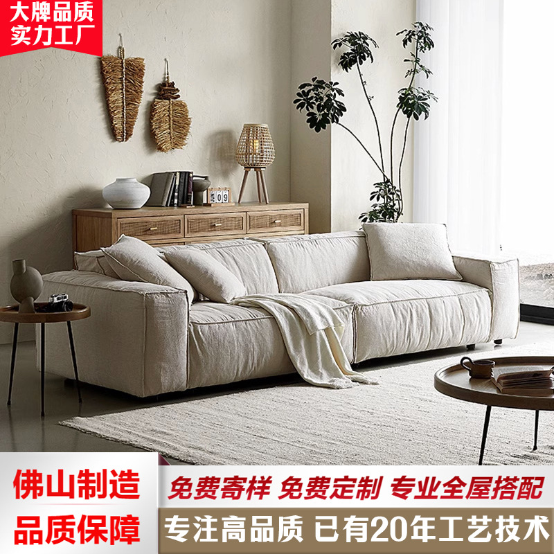寂風亜麻布芸ソファー小戸型客間豆腐塊三人位直列ダウン北欧復古ソファー