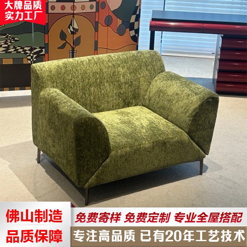 イタリアの非常にシンプルなフライングウィングレジャーチェアデザイナー回転式アームレストシングルレジャーファブリックソファチェア