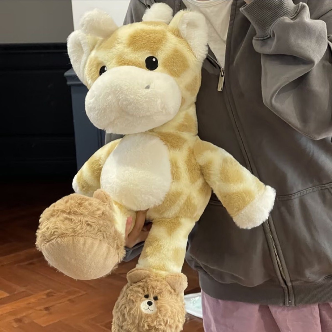 漫画カジュアルな鹿のぬいぐるみかわいいキリンの人形の女の子は子供のプレゼントのぬいぐるみをなだめる