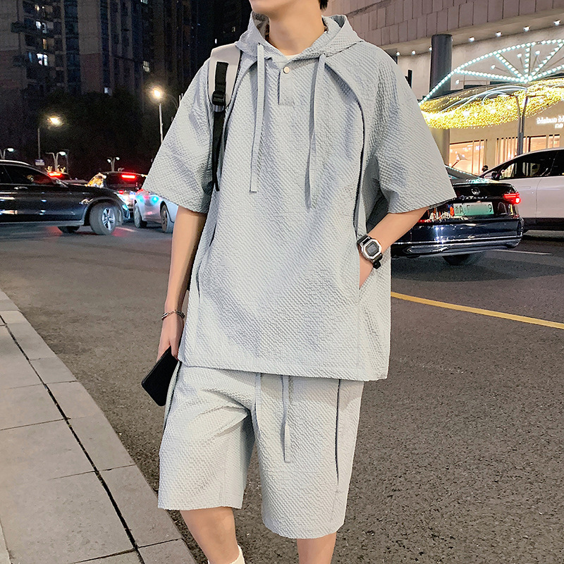 クロスボーダー卸売メンズライブブロードキャストトレンディブランド中国風ルーズショーツツーピース夏半袖カジュアルクロスボーダーアウトドア