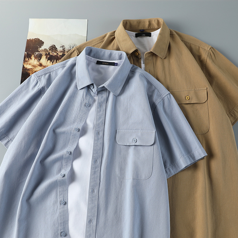 クロスボーダー卸売夏の新しいメンズ半袖シャツアメリカンワークウェアトレンディなルーズシャツトップジャケット