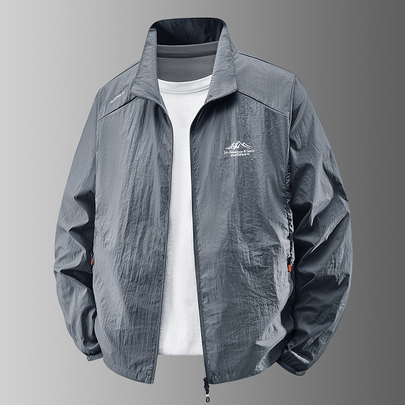クロスボーダー卸売日焼け止め服男性用ナイロン中年スタンドアップカラー日焼け止め服男性用屋外軽量通気性抗紫外線