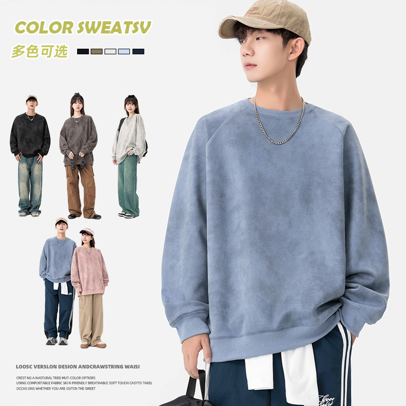 クロスボーダー卸売メーカー春夏データラペルスウェットシャツ偽ツーピース男性と女性のカップルライトグレー