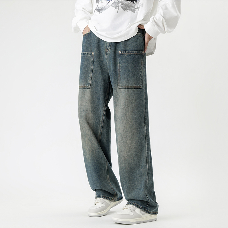 国境を越えた男性のアメリカの高い街の水洗いジーンズの男性のゆるいストレートのファッションのカジュアルなズボンの代理