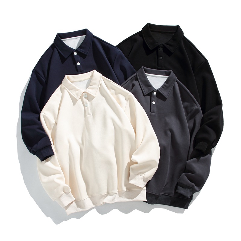 クロスボーダー卸売り春秋純色poloシャツ潮牌衛衣男女公光色長袖折り襟t代件