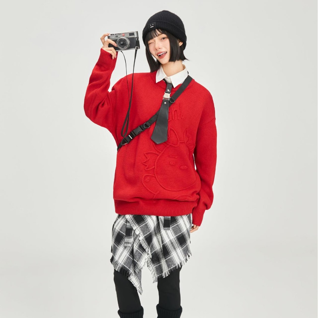 クロスボーダー卸売り龍年冬限定セーター本命年カップルの丸襟ファッション保温ニット