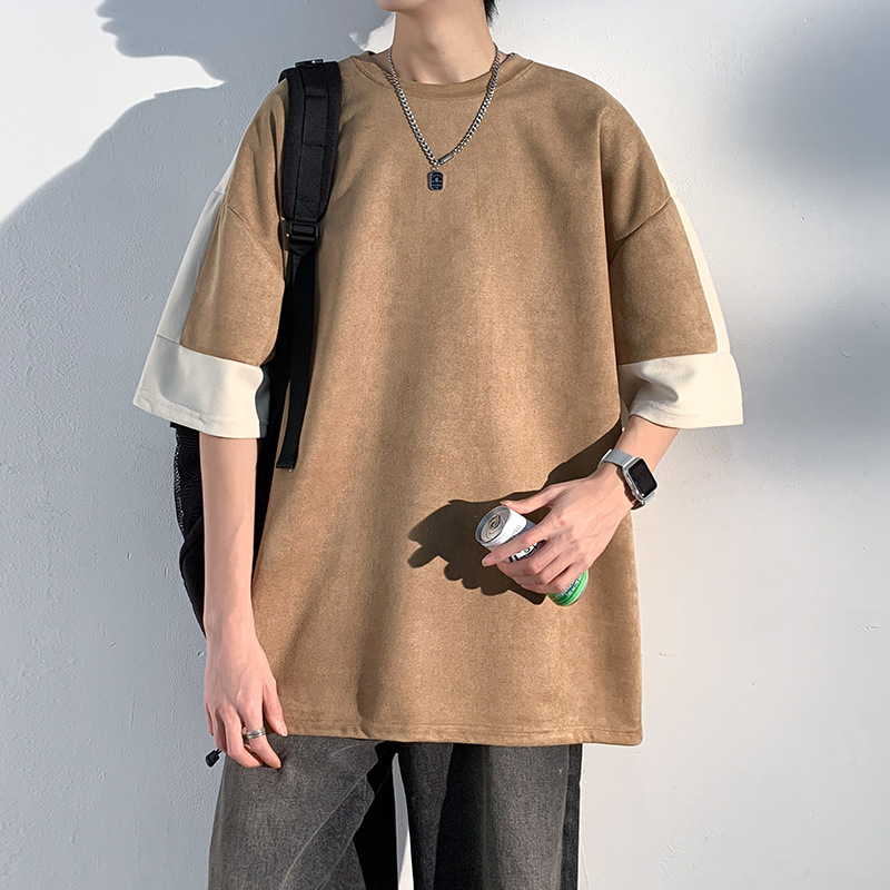 2023夏の新型超火insカジュアル男性ファッションスエード半袖tシャツ日系レトロなシャツ