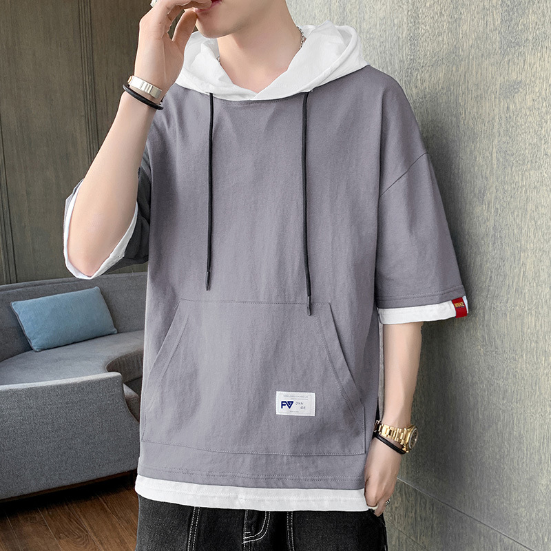 帽子付きtシャツ男性夏新作カジュアルtシャツ学生半袖の薄い上着に合わせてファッション紳士服