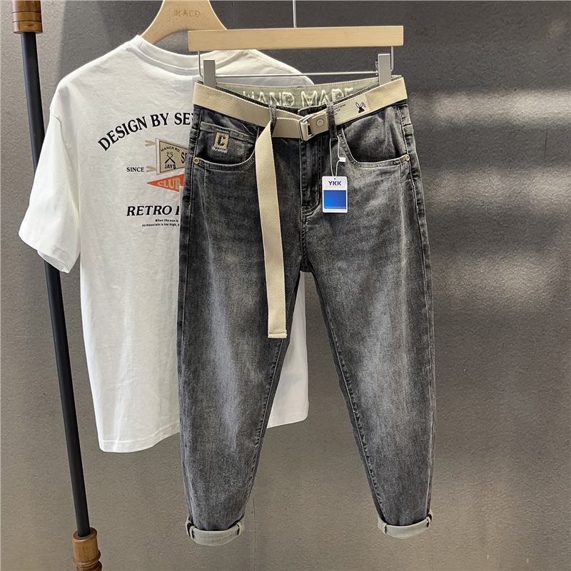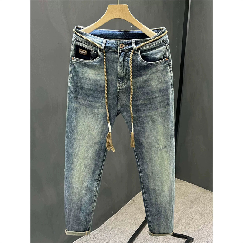 夏の男性向けのトレンディなハイエンドジーンズ、新しいスリムフィット、伸縮性のある韓国スタイル、トレンディで多用途なカジュアル9点パンツ