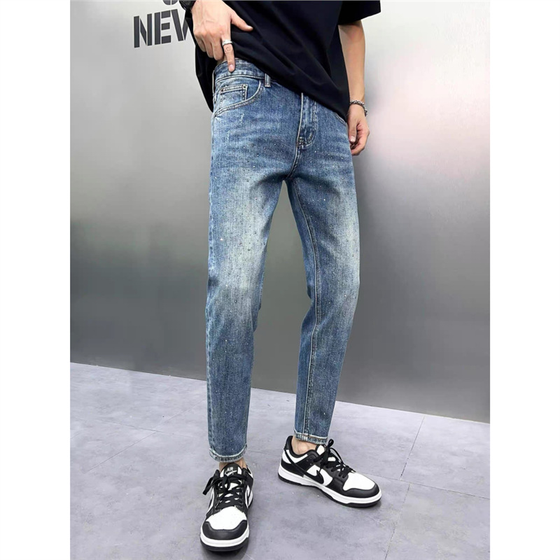 メンズハイエンドホットダイヤモンドジーンズ2025夏の新しい9点パンツトレンディなファッションカジュアルスリムフィットパンツ