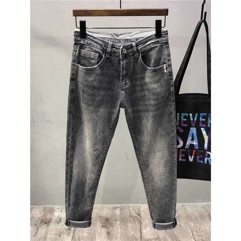 2025 新しいハイエンドストレッチグレージーンズメンズ夏のトレンディなブランドスリムフィット多用途カジュアル 9 点パンツ