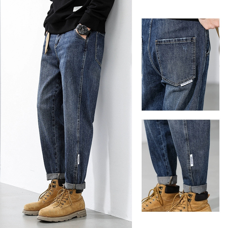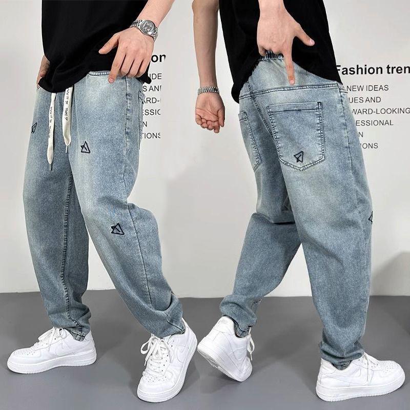春と秋の男性用伸縮性ウエストジーンズ、新しいアメリカンスタイルのウォッシュ加工トレンディブランド、ハンサムで多用途、ゆったりとしたカジュアルなハーレムパンツ