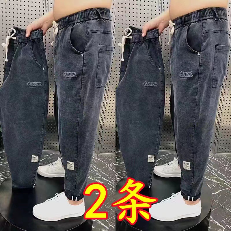 新しい太った男性用の太ったと痩せたワークジーンズ、大きいサイズの9点パンツ、男性用のゆったりとしたレギンスカジュアルパンツ、ハーレムパンツ