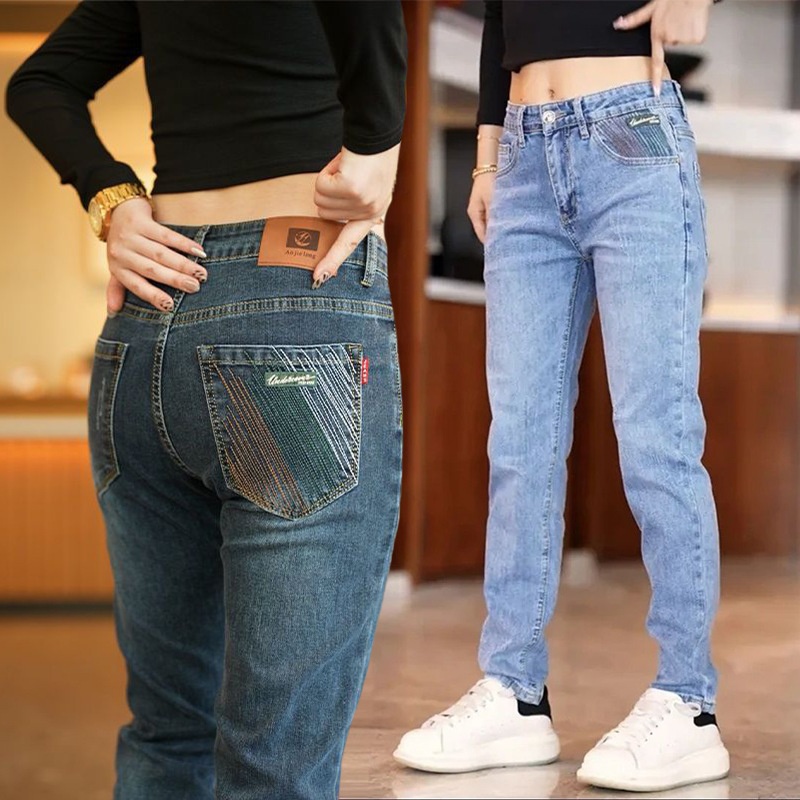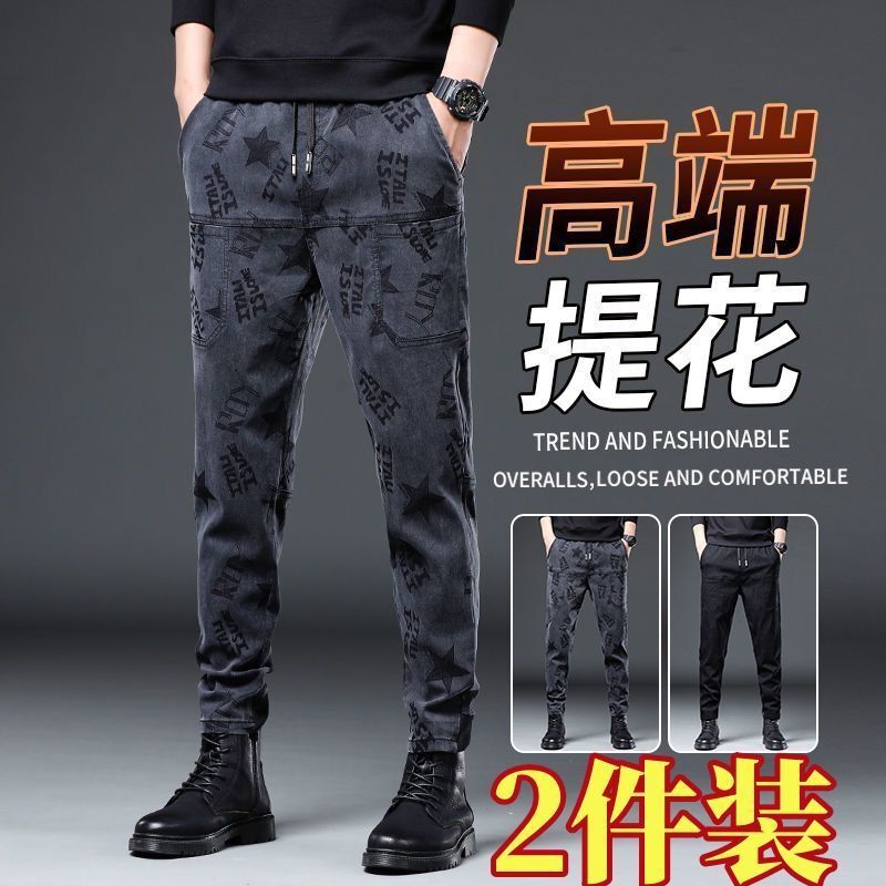 春の刺繍入りジーンズメンズ 2025 新しい多用途弾性スリムフィット韓国スタイルトレンディなハンサムカジュアルパンツ