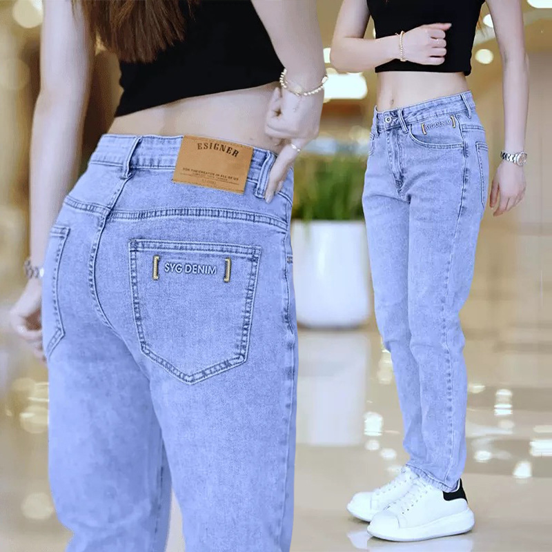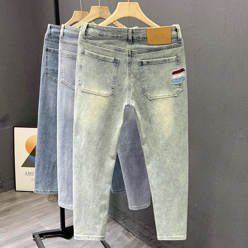 メンズジーンズ 2025 夏新作小足スリムライトブルーパンツメンズストレッチトレンド 9 点パンツ