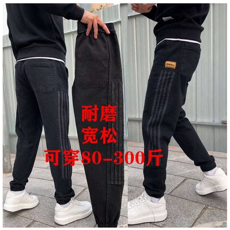 夏用大きいサイズのメンズ耐摩耗性ルーズストレッチジーンズ、カジュアルハーレムパンツ、プラスファット、ファットブラザー労働保護パンツ