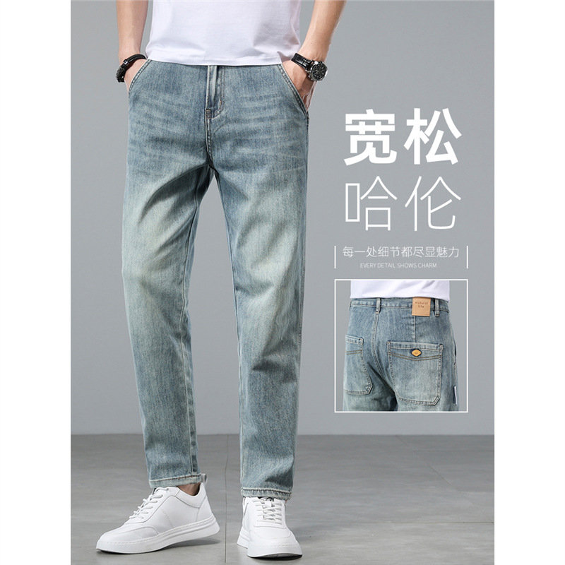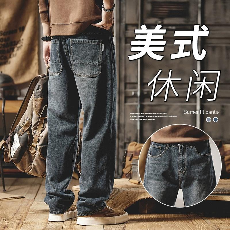 アメリカンレトロウォッシュジーンズメンズ2024春秋新作トレンドブランドルーズストレートハーレムカジュアルロングパンツ